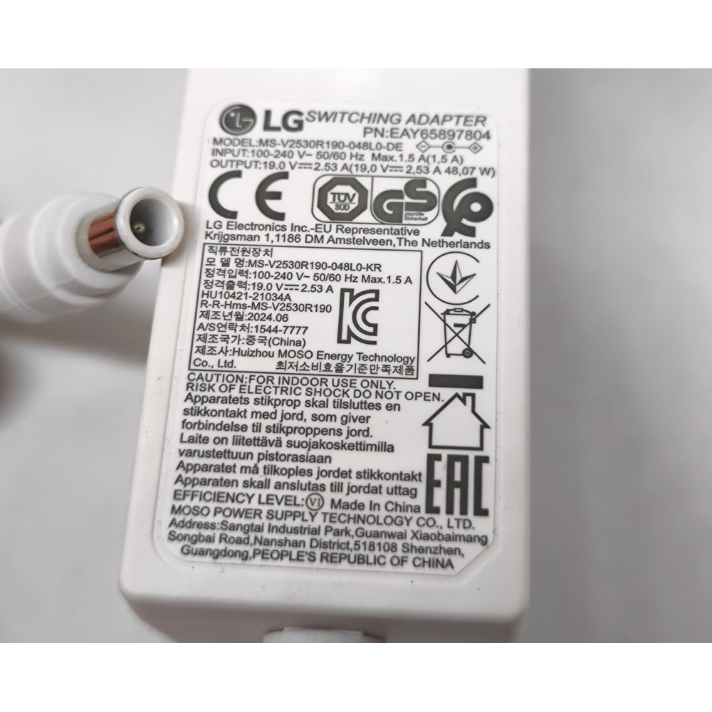 Original LG MS-V2530R190-048L0-DE power supply charger power adapter 19V 2.53A